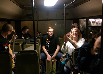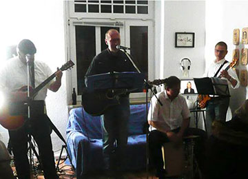 Wir spielen drinnen und draußen, laut (mit Schlagzeug/PA) oder etwas leiser (mit Cajón/akustisch), bei Junggesellinnenabschieden und Vernissagen, in Schrebergärten, Garagen und Fußgängerzonen, in Kneipen, Wohnzimmern, im Bus, auf großen Bühnen (HUK Sommerfest), engstem Raum ...